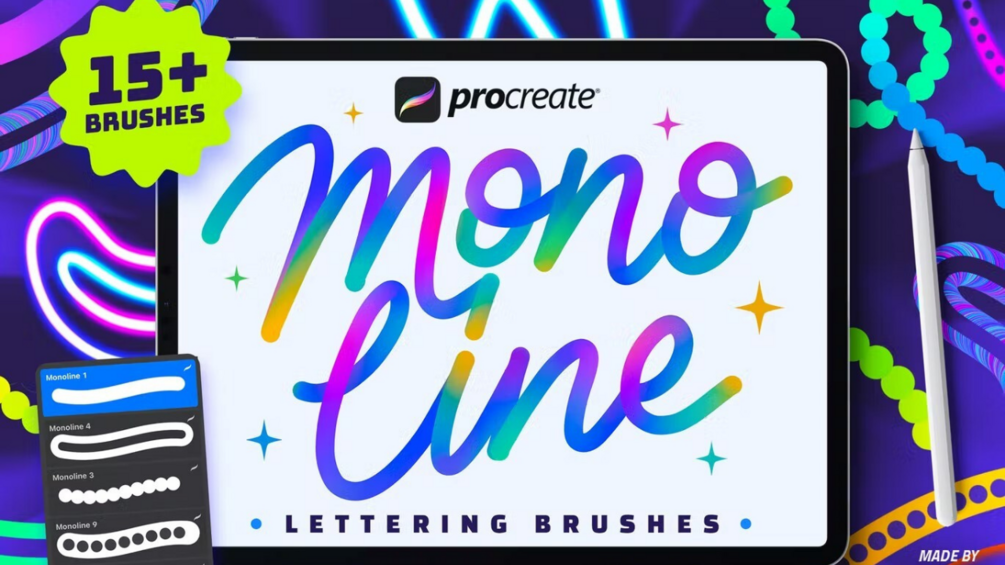 Introducing 15+ Procreate Monoline Lettering Brushes!